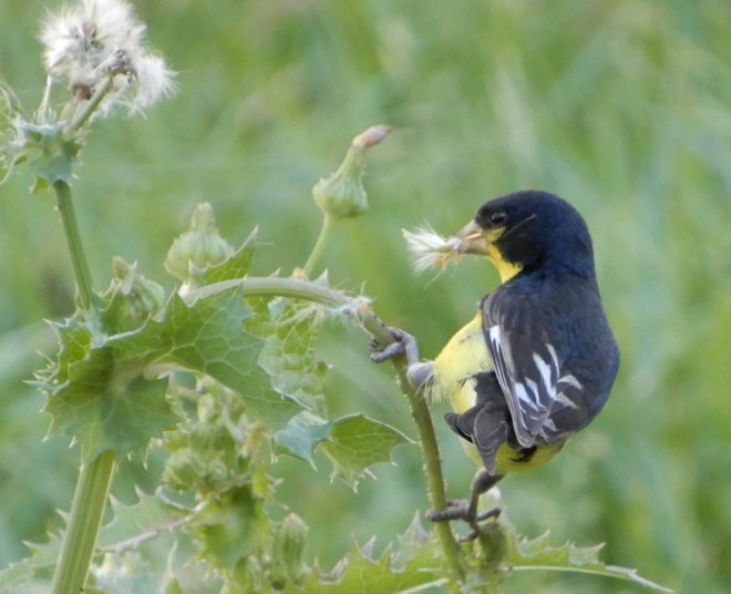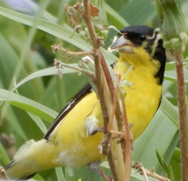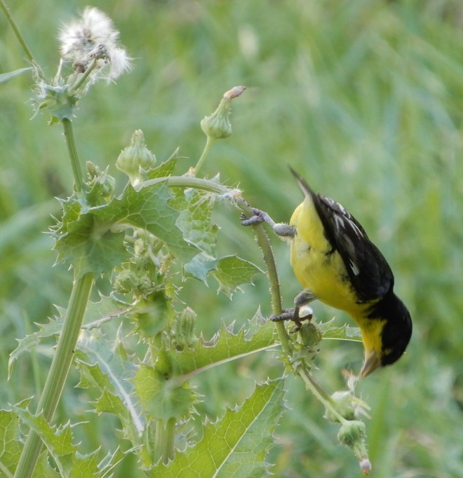 Okay…So, I had forgotten about birds liking the seeds. The plant would stay for awhile longer in our yard as a nice little food source for these critters. And the plus here is that we were only about 6 feet away from this little guy and got to enjoy his beauty.