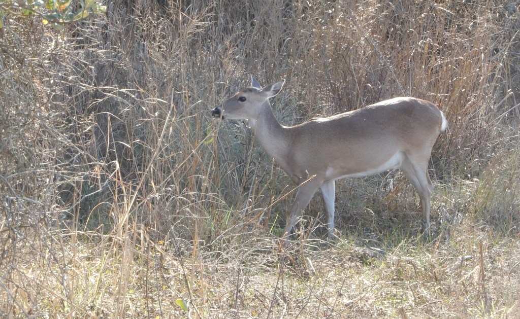 The next morning we headed out to the Aransas National Wildlife Refuge. The refuge is 48 miles from Rockport and much of the trip is a drive around plowed, barren winter fields. It was windy that day, not ideal for birding. But, we saw quite a few interesting critters, some from the car and some from walking the numerous trails. Here is the first one I took a photo of: